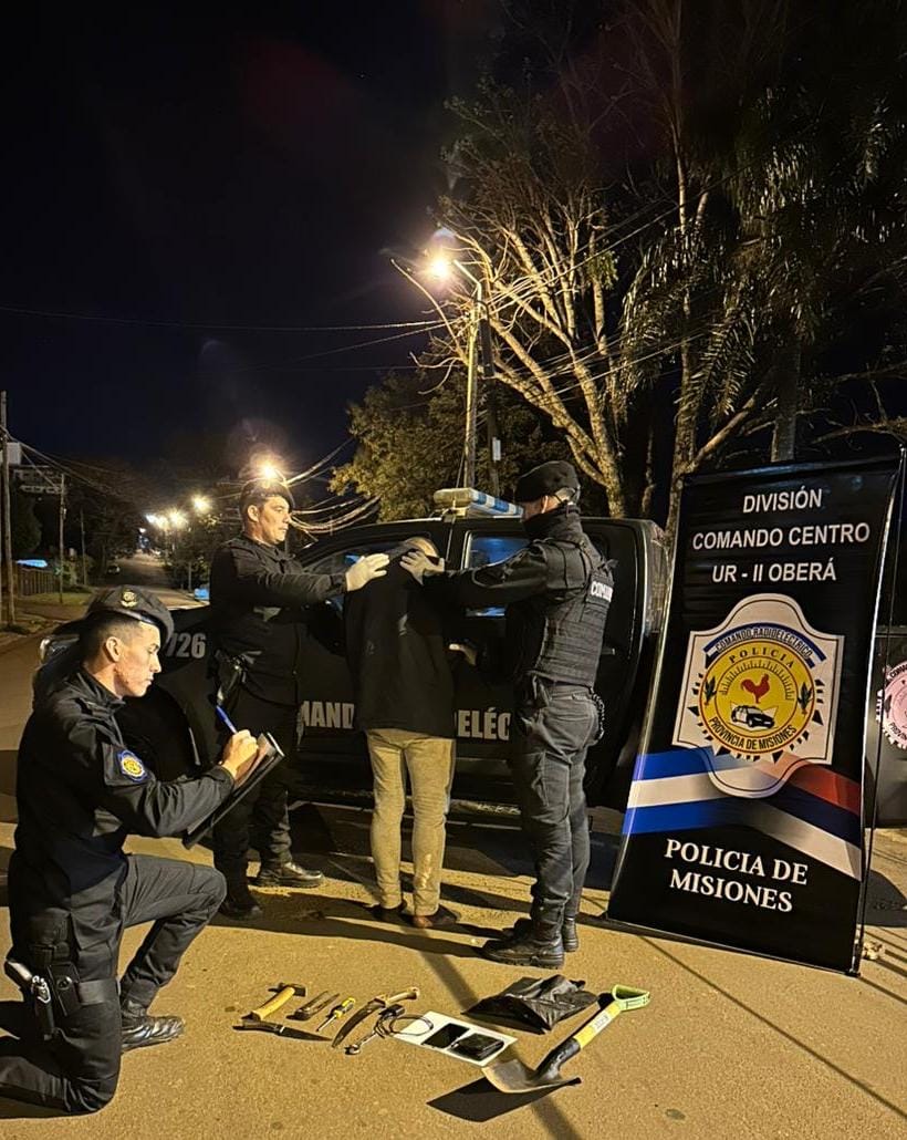 Finalmente, en la madrugada de este martes, efectivos que realizaban recorridas preventivas sorprendieron a un joven de 25 años que huía tras ingresar a una vivienda en la zona céntrica. El sospechoso fue reducido en el lugar y entre sus pertenencias se secuestraron herramientas, un celular, una billetera y otros objetos que habían sido robados del domicilio de un hombre de 52 años.