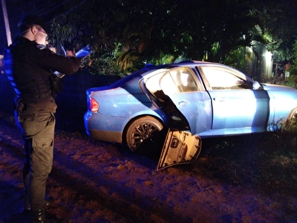 Al notar la presencia policial, los ocupantes del BMW emprendieron una huida a alta velocidad, lo que dio inicio a una persecución controlada por distintas arterias de la ciudad. Minutos después, la fuga terminó abruptamente sobre la calle Carlos Gutiérrez, donde el automóvil perdió el control y colisionó contra el muro de una vivienda.