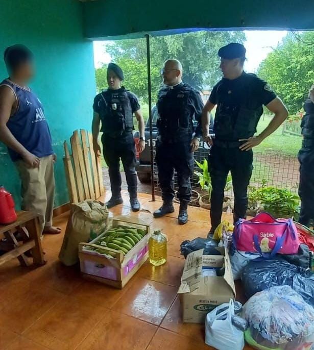 Así fue que este jueves, agentes del Comando y la Comisaría local de Villa Bonita, junto al cura, realizaron la entrega de los primeros elementos recolectados por la comunidad para Miguel y sus cuatro hijos menores.