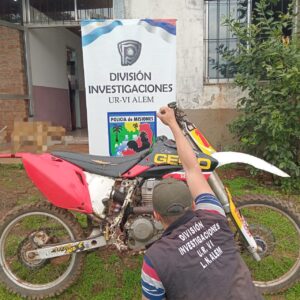 En Alem, la División Investigaciones recuperó una motocicleta Honda con pedido de secuestro por robo ocurrido en noviembre de 2021 en la Ciudad Autónoma de Buenos Aires. El rodado, que presentaba numeración ilegible y plásticos modificados, fue ubicado en el barrio 20 de junio en poder de un hombre de 28 años, quien habría manifestado haberla adquirido por una suma de dinero.