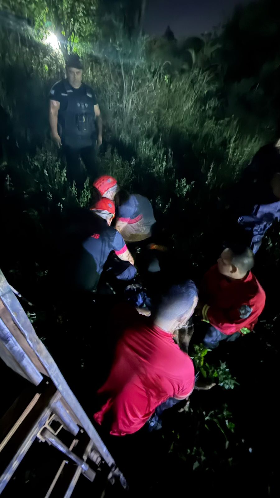 En el lugar se encontraban trabajando efectivos de la División Bomberos de Garupá, quienes mantenían diálogo con el individuo intentando persuadirlo para que descendiera de forma segura. Posteriormente se sumaron efectivos de la División Rescates Complejos, quienes colaboraron en las tareas de contención y asistencia.