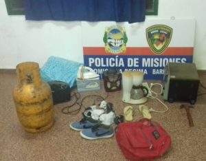 Inmediatamente una comisión policial llegó al lugar y observó a dos jovencitos que al notar su presencia, abandonaron varios objetos y se dieron a la fuga. Allí, se procedió al secuestro de 1 cilindro de gas de 10kg, 1 horno eléctrico 1 mochila, 1 pava eléctrica, 1 par de zapatillas, 1 cafetera, 1 caloventor, 1 equipo de música 1 plancha, entre otros elementos.