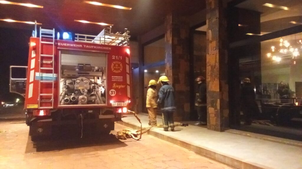 En la madrugada de hoy, la guardia de los Bomberos Voluntarios de Iguazú recibió una denuncia por un principio de incendio en un hotel ubicado en la zona de las 600 Hectáreas.