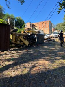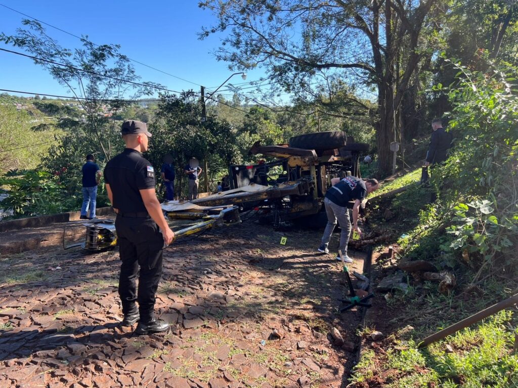 El incidente ocurrió este lunes alrededor de las 15:00 horas, sobre calle Gervasio Posadas, en el barrio Fátima. Según se estableció, el trabajador circulaba con la maquinaria cuando, al descender por una pendiente pronunciada, perdió el control.