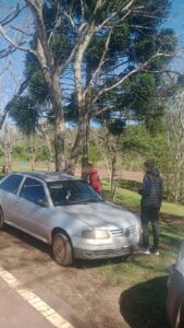 Durante una recorrida a pie, a unos 300 metros sobre la colectora de acceso, los agentes observaron un automóvil Volkswagen Gol, estacionado a la vera del camino, lo que motivó la verificación de sus datos registrales.