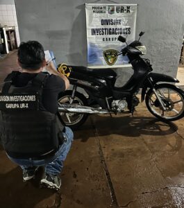 En continuidad con los operativos, la División Investigaciones de Garupá interceptó en el barrio Santa Clara a un motociclista que circulaba con un rodado en condiciones irregulares, sin documentación y con el sistema de encendido manipulado. Ante esta situación, se procedió al secuestro de la motocicleta para determinar su procedencia, estableciéndose posteriormente que se trataba de un vehículo robado.