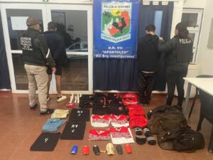 Finalmente, en Posadas, la Dirección de Investigaciones Complejas detuvo a Kevin Damián J., de 25 años, quien tenía pedido de captura en una causa por delito contra la integridad sexual. Fue localizado en el barrio San Gerardo y puesto a disposición del juzgado interviniente. Además, en otro procedimiento, la Comisaría 8ª recuperó gran parte de los bienes sustraídos a un joven de 23 años en el barrio San Lorenzo. Los elementos, entre ellos electrodomésticos, herramientas, calzado, artículos personales y un redoblante, fueron hallados en tres bolsas abandonadas en la vía pública, gracias al alerta de un vecino.