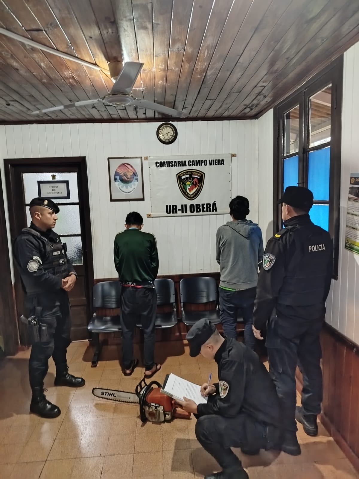 En tanto, en Campo Viera, la División Comando Radioeléctrico detuvo a Fernando M., de 25 años, alias “Topera”, y demoró a un menor de 16, ambos implicados en el robo de una motocicleta Yamaha FZ 150 cc y una motosierra Stihl. Los sospechosos fueron identificados a partir de cámaras de seguridad y testimonios de vecinos del barrio Oeste. La motosierra fue recuperada en el momento de la aprehensión, mientras que la motocicleta fue hallada oculta entre malezas en el Lote 32.